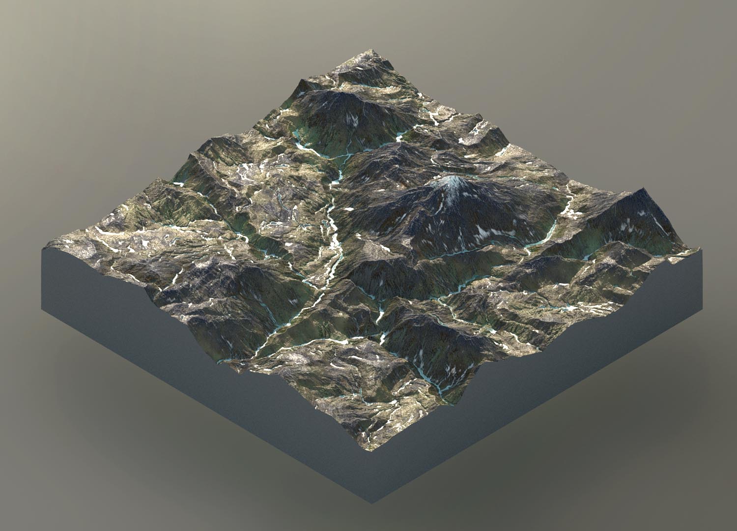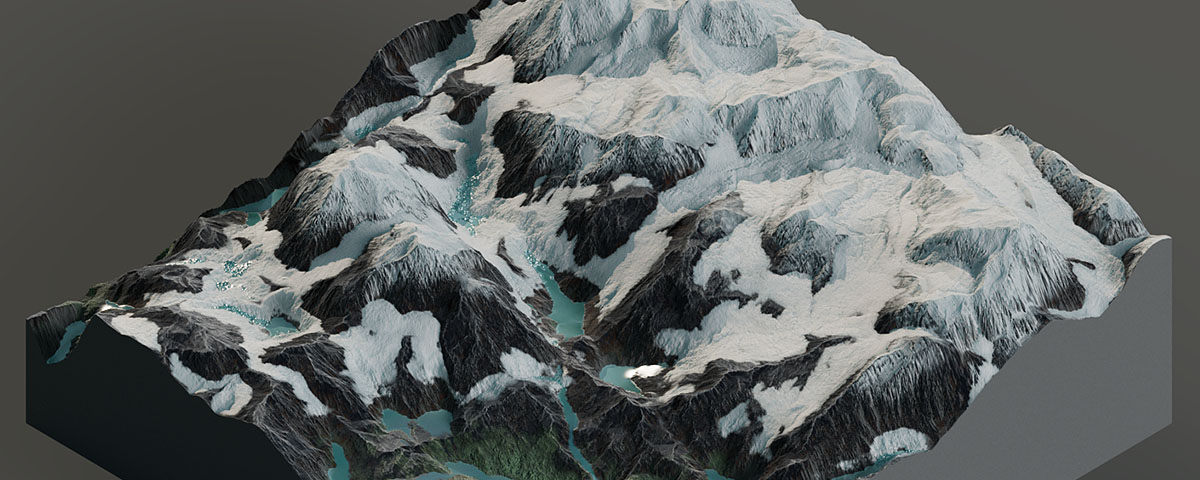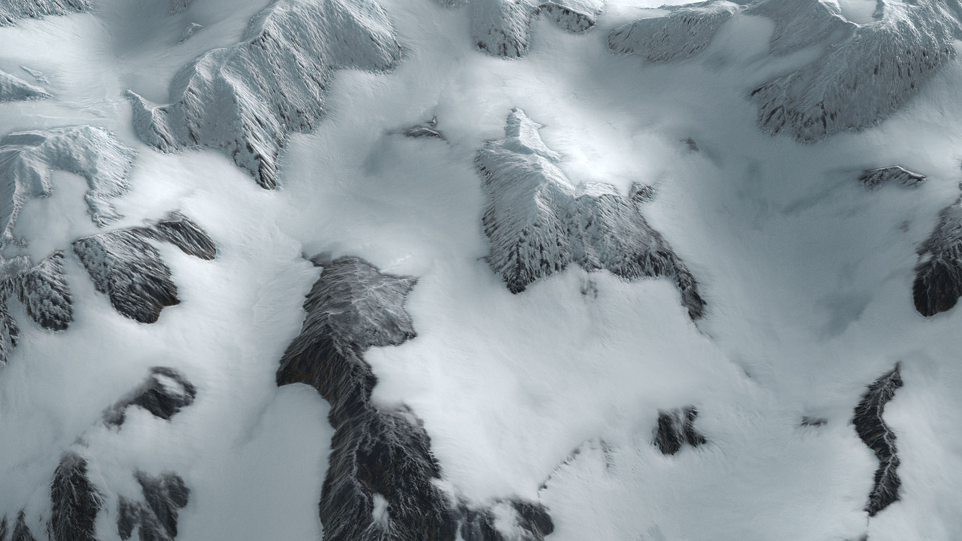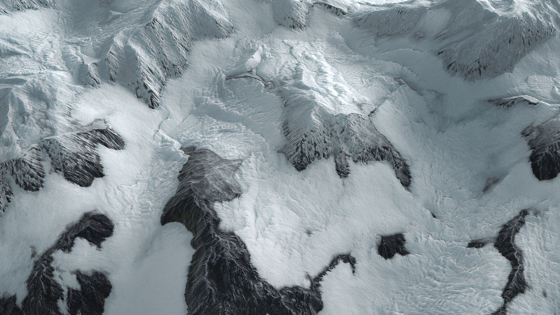 parameter leads to natural looking chunks of snow, complete with ridges and cracks that are orientated to the flow of the glacier.