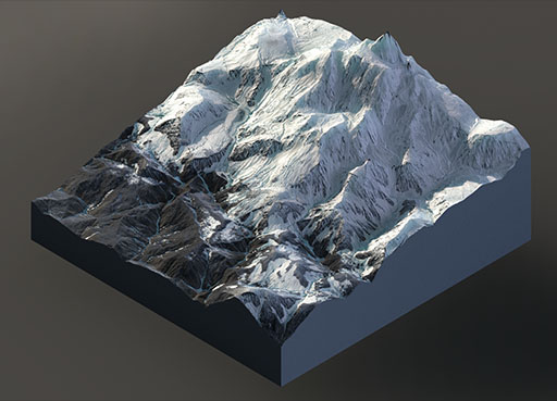 I'm building an animated composition entirely within Houdini in order to learn its key systems. The backdrop for this composition will be a Himalayan mountain-scape, giving me an opportunity to get to grips with Houdini's heightfield workflow.