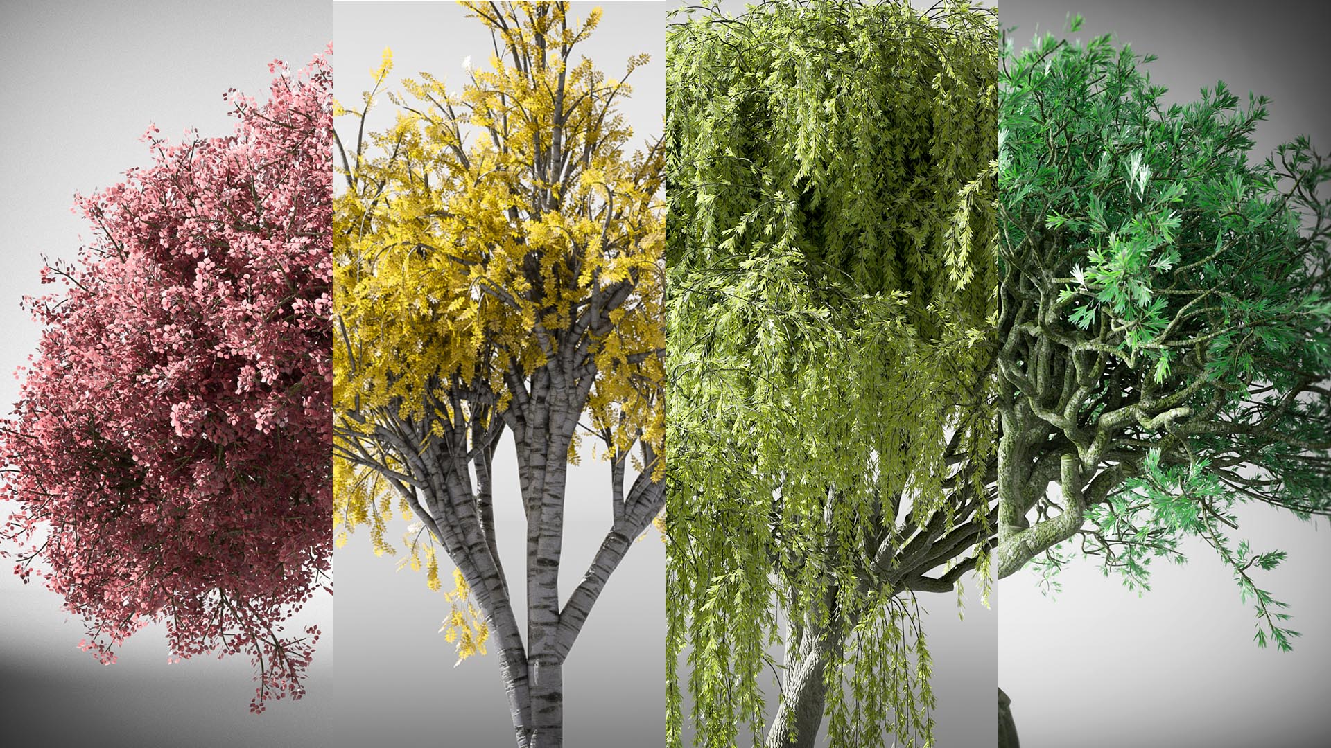 While my composition only requires a single species of Himalayan pine, I had fun designing a system that could reproduce a variety of tree structures and shapes. Here's a few of the best ones. The source file contains these plus a few more.