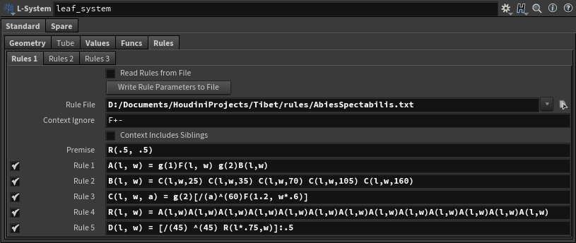 Houdini ships with a Node supporting L-system syntax to generate connected line segments. On the surface, this appears to be an ideal way to start building trees.