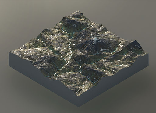 I'm building an animated composition entirely within Houdini in order to learn its key systems. The backdrop for this composition will be a Himalayan mountain-scape, giving me an opportunity to get to grips with Houdini's heightfield workflow.