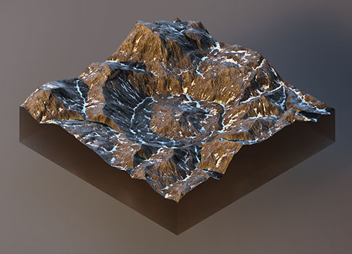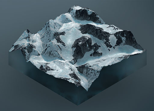 parameter leads to natural looking chunks of snow, complete with ridges and cracks that are orientated to the flow of the glacier.
