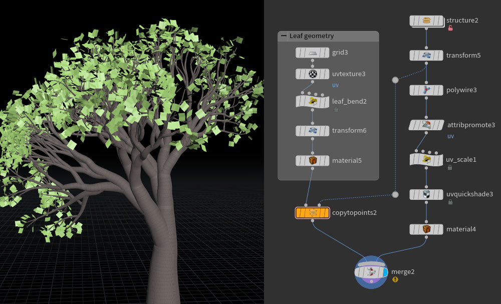 A key element of a composition I'm building in Houdini is a tree. Much like mountainous terrain, trees are a classic target for procedural generation, so I'm not going to be presenting anything particularly ground-breaking here, but I've learned a great deal. If you're a Houdini beginner like me, I hope this article helps you towards your own 'aha' moments.